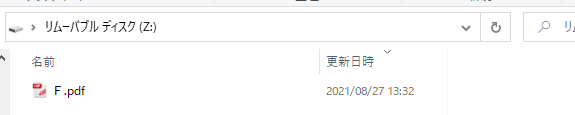仮想ドライブ上にあったE.pdfファイルがUSBドライブの非保護領域に移動している。