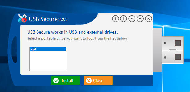 セキュリティ保護したいUSBメモリを選択し、「Install」ボタンを押す。