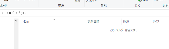 また、エクスプローラーが自動起動し、以下のUSBメモリドライブが表示される。(この場合は、Hドライブ)