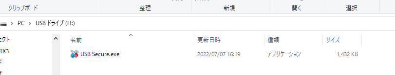 USBメモリ内にインストールされたセキュリティソフトUSB Secure.exeを起動する。