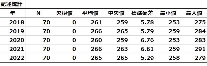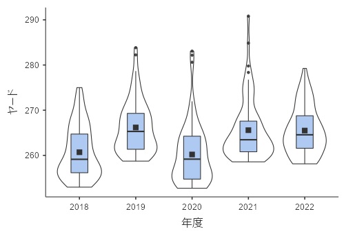 ただ、最大値は、282±9ヤードと年度差が大きくなっています。